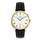 Uret er fremstillet i 316L Stainless Steel - gulddouble. Urskiven er hvid med alle 12 markeringer i form af romertal samt datofunktion. Designet er afsluttet med en lækker sort læderrem.