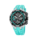 Uret har en flot sort urskive med lyseblå detaljer og dato samt chronograph funktion. Kombinationen af den sporty gummirem og den robuste urkasse, gør uret både robust og gør looket sporty og moderne.