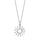 Halskæden er fremstillet i rhodineret 925 Sterlingsølv med en blank overflade. Vedhænget er udformet som en åben cirkel skabt af syntetiske zirkoner. Vedhænget måler 15mm og halskæden kan justeres 42-45cm.