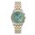 Uret er fremstillet i 316L Stainless Steel - bicolor (gulddouble). Urskiven er turkis med alle 12 markeringer samt chronograph og datofunktion. Designet er afsluttet med en stilfuld 5-leds lænke.