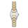 Uret er fremstillet i 316L Stainless Steel - bicolor (gulddouble). Urskiven er turkis med alle 12 markeringer i form af syntetiske zirkoner. Designet er afsluttet med en stilfuld 3-leds lænke.