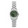 Uret er fremstillet i 316L Stainless Steel. Urskiven er grøn med alle 12 markeringer i form af syntetiske zirkoner. Designet er afsluttet med en stilfuld 3-leds lænke.