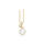 Halskæden er fremstillet i forgyldt 925 Sterlingsølv med en blank overflade. Vedhænget er prydet med klare syntetiske zirkoner og en hvid ferskvandsperle.