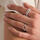 Ringen er fremstillet i rhodineret 925 Sterlingsølv med en blank overflade. Ringen er prydet med klare syntetiske zirkoner.