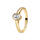 Ringen er fremstillet i forgyldt 925 Sterlingsølv med en blank overflade. Ringen er prydet med en klar syntetisk zirkon og måler 8mm i bredden. Ringen fås i størrelserne 50-60.