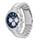 Uret er fremstillet i 316L Stainless Steel). Det er designet med en klassisk mørkeblå urskive, alle 12 markeringer samt chronograph med 24 timers visning. Designet er afsluttet med en stilfuld lænke.