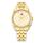 Uret er fremstillet i 316L Stainless Steel - gulddouble. Urskiven er guld med alle 12 markeringer samt dag -, dato- og 24-timers visning. Uret er prydet med funklende syntetiske zirkoner. Til sidst er designet afsluttet med en stilfuld lænke.