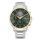 Uret er fremstillet i 316L Stainless Steel - bicolor (gulddouble). Det er designet med en klassisk grøn urskive, alle 12 markeringer samt dag-, dato- og med 24 timers visning. Designet er afsluttet med en stilfuld stållænke.